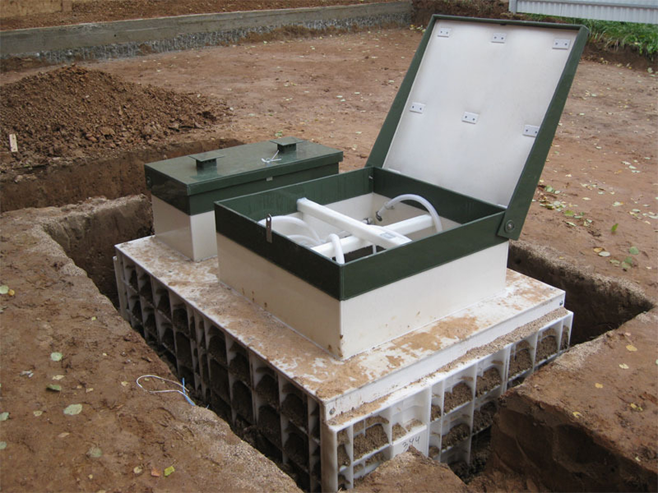 Наряду с ямой для септика необходимо сделать траншеи для подведения канализационных труб и отвода переработанных сточных вод. Если септик будет использоваться круглый год, то все трубы должны быть проложены ниже линии промерзания грунта. После установки септика его подключают к канализации.